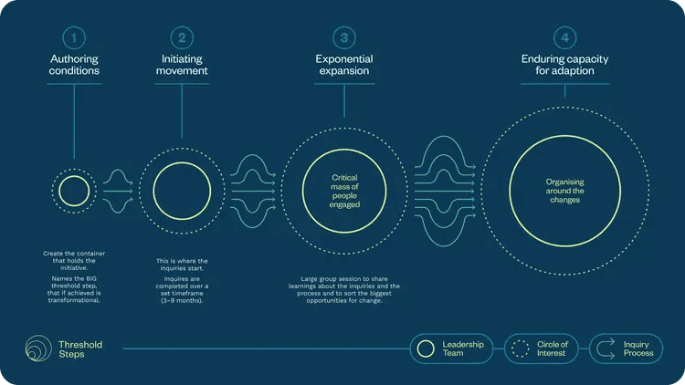 The Threshold Steps approach engages with human organisation through the lens of ecosystems.